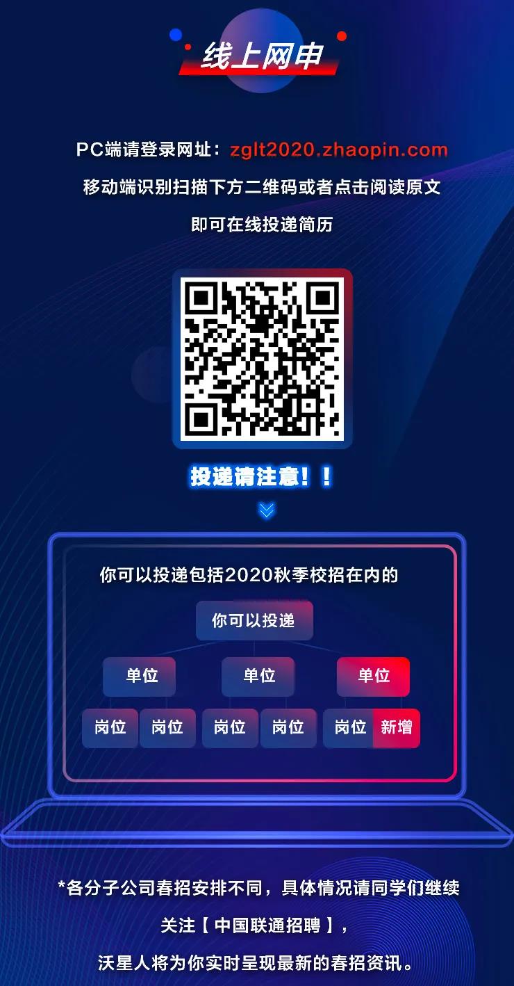 中国联通2020线上春季校园招聘正式启动