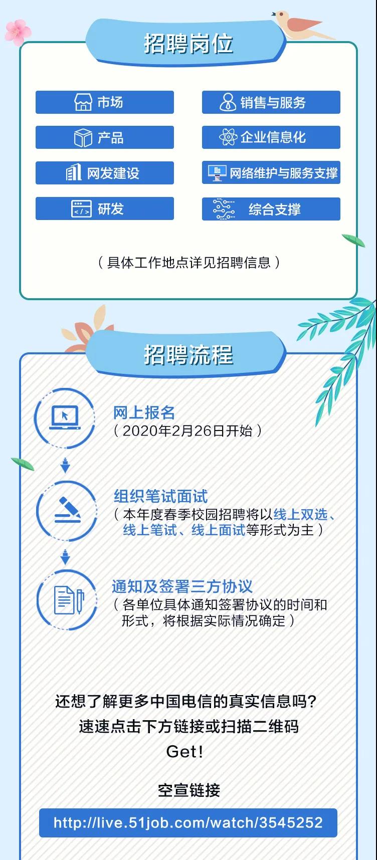 40+单位,3000+岗位!中国电信2020春季校园招聘来了!