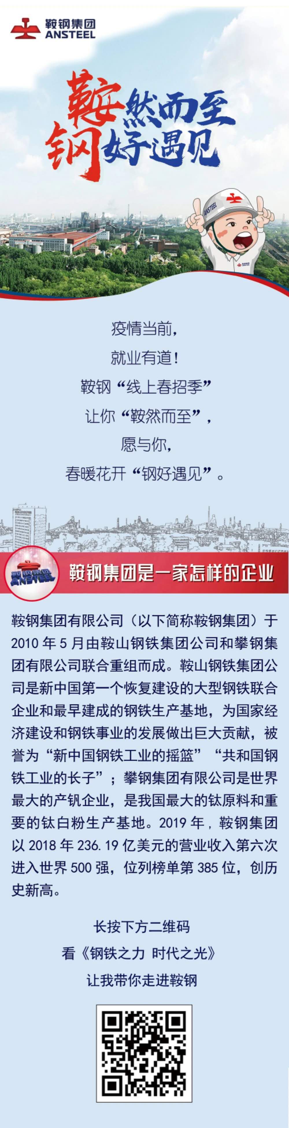 【校招】20家公司125个岗位260人 鞍钢集团“线上春招季”来了!