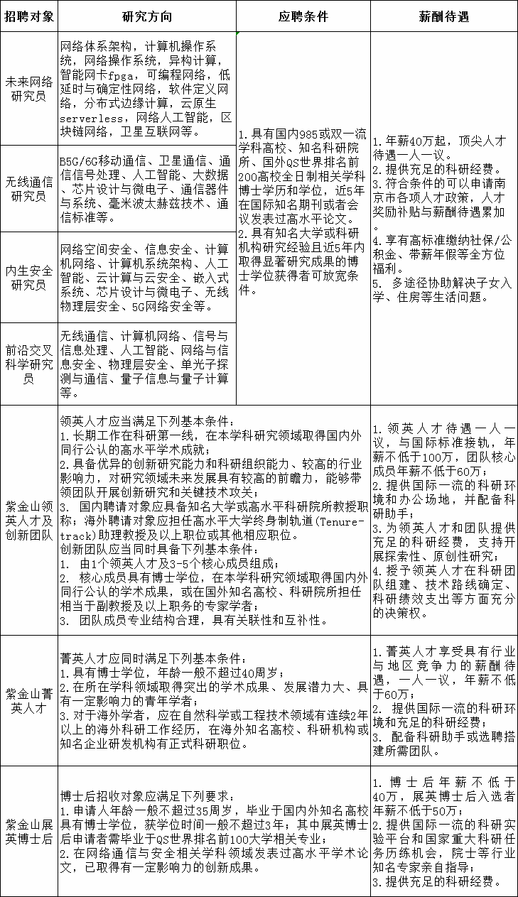 ——网络通信与安全紫金山实验室高层次人才招聘公告