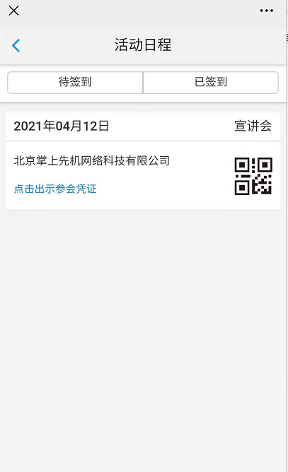微信端查看我的报名,无需下载入场券,直接出示进行扫码即可,如下图所示: