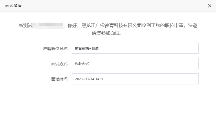 列表显示用人单位发送的全部面试邀请通知,如下图所示: