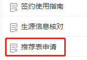 登录学校就业网首页找到“推荐表申请”模块,点击【推荐表申请】,如下图所示: