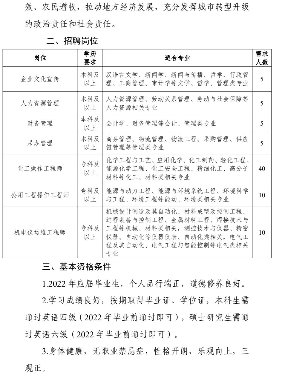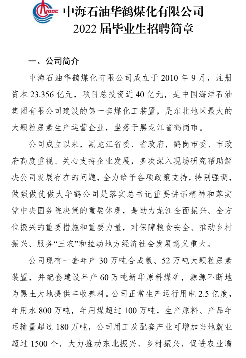 中海石油华鹤煤化有限公司 2022 届毕业生招聘简章