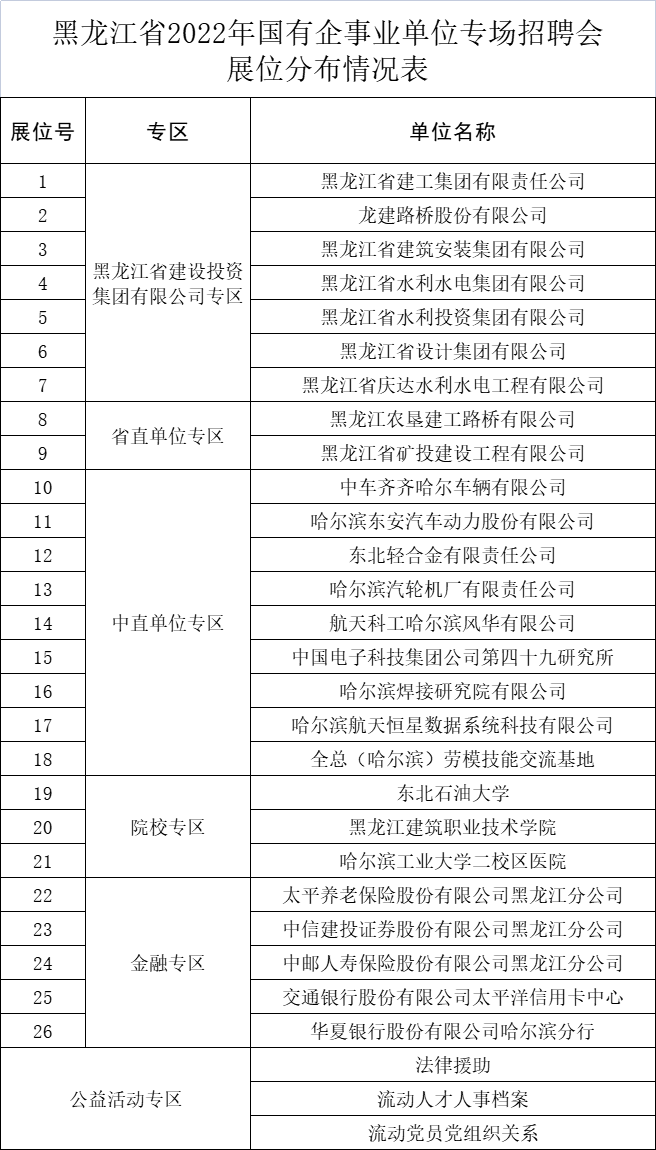 2022黑龙江省国有企事业单位专场招聘会8月13日开始(招聘920人)