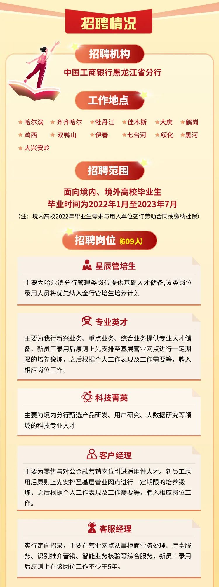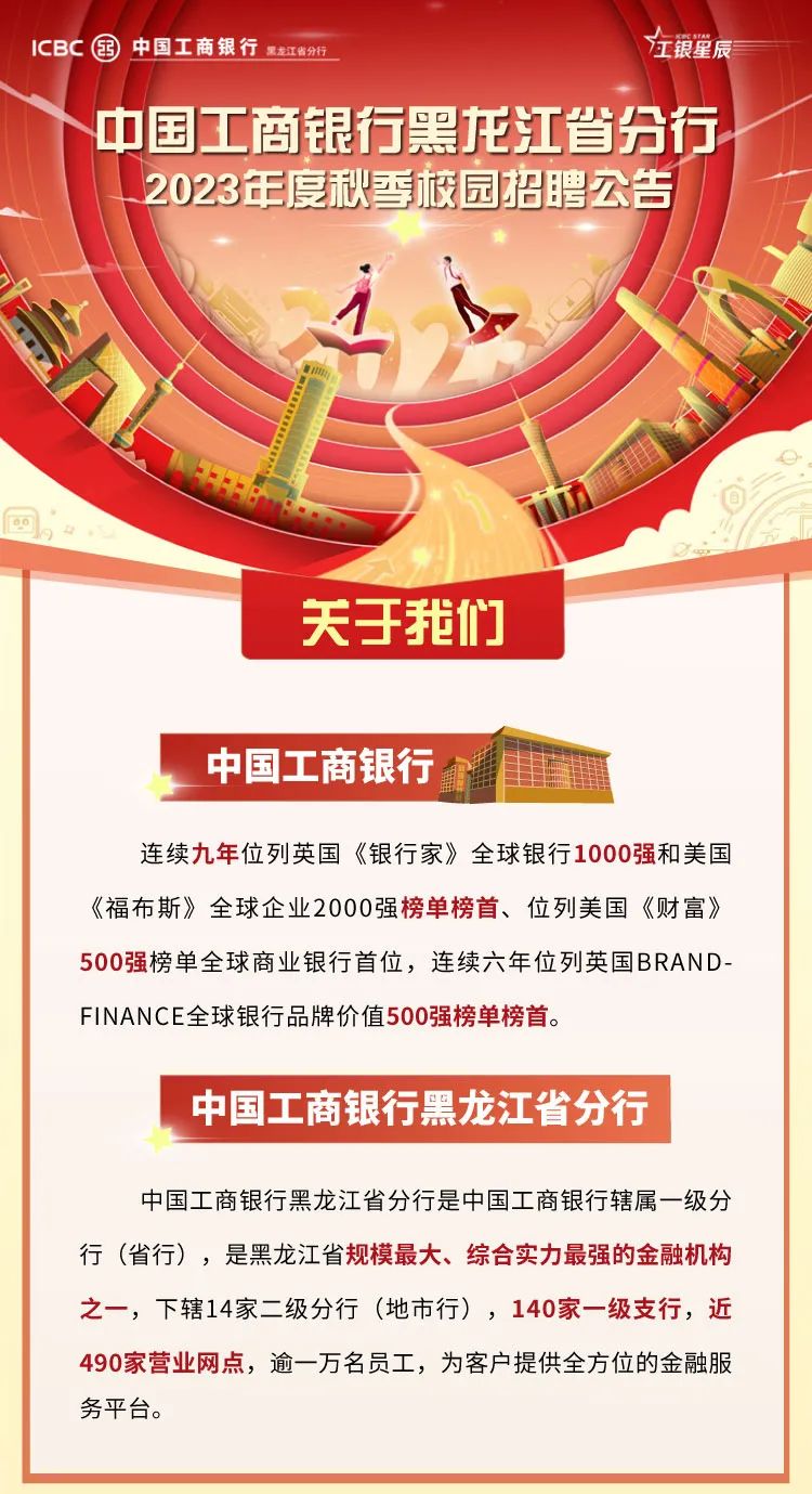 中国工商银行黑龙江省分行2023年度秋季校园招聘公告