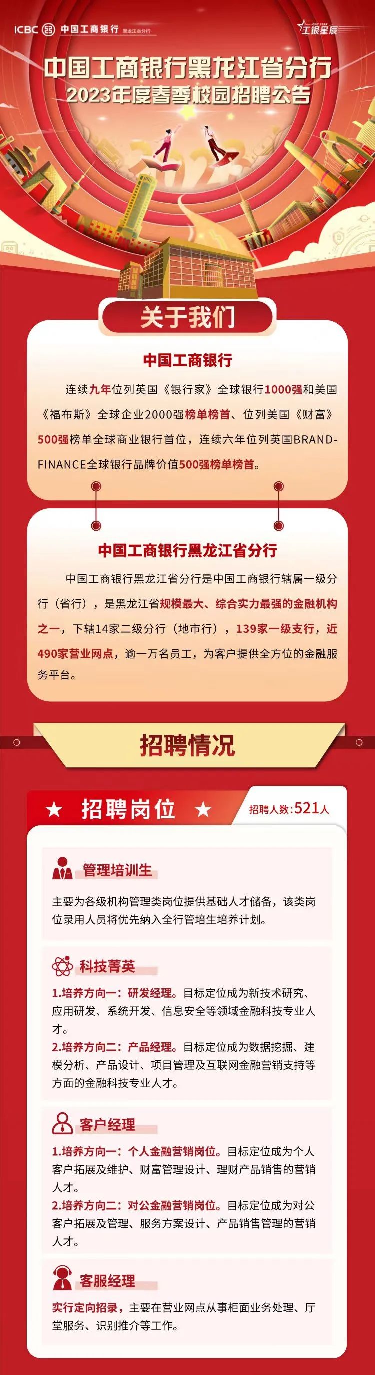 中国工商银行黑龙江省分行2023年度春季校园招聘