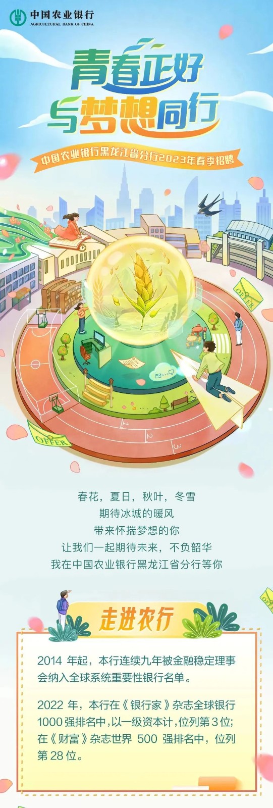 【168人·大专及以上·不限专业】中国农业银行黑龙江省分行招聘公告