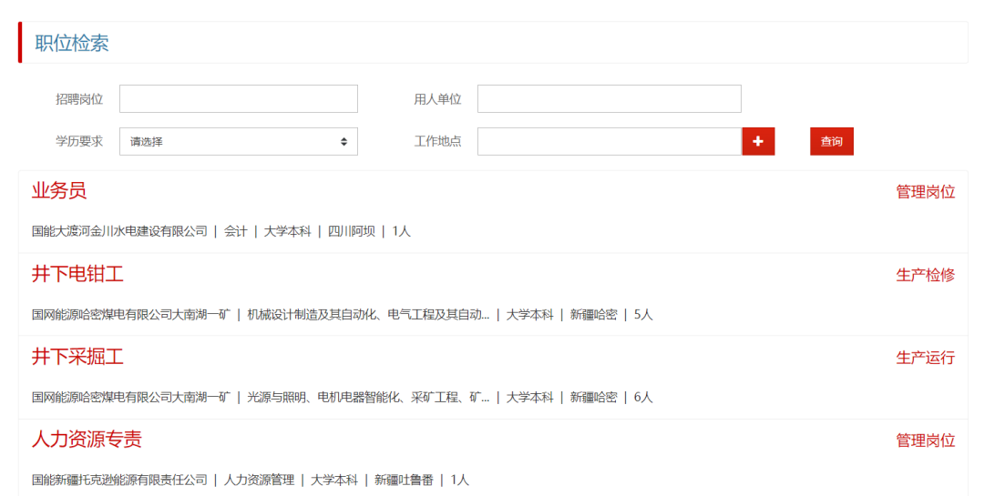 (一)系统报名1.查询职位。可同时登陆国家能源集团人力资源招聘网站(http://zhaopin.chnenergy.com.cn)校园招聘栏“三地”入口或中智招聘平台(www.ciiczhaopin.com)查询岗位信息。2.注册简历。实名注册,并填写个人简历。3.应聘职位。每名毕业生仅可应聘1个岗位,请慎重选择。如需更换岗位,须取消前次应聘,再发送新的求职申请。