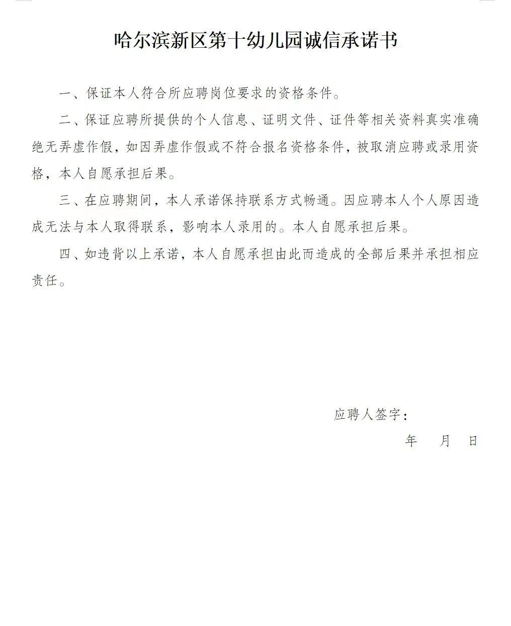 附件二:哈尔滨新区第十幼儿园诚信承诺书
