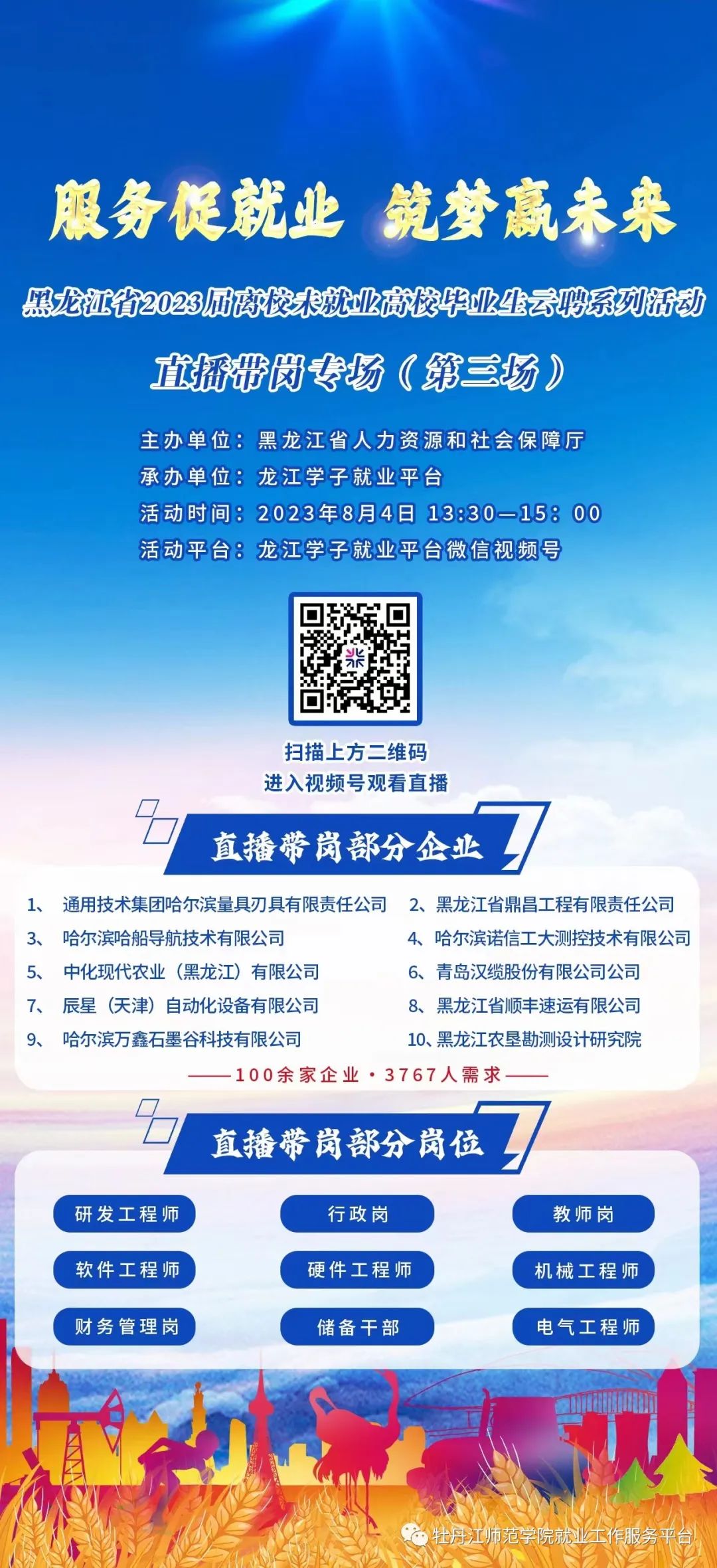 黑龙江省2023届离校未就业高校毕业生云聘系列活动直播带岗专场(第三场)