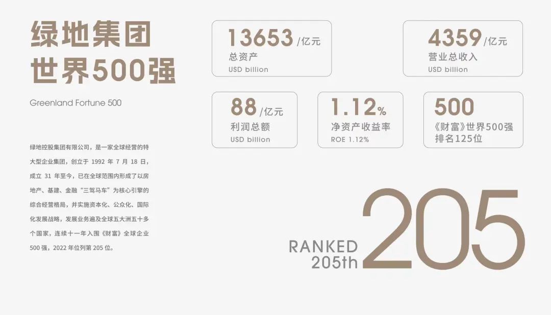 绿地控股集团有限公司(简称为“绿地”或“绿地集团”)是?家国有控股全球经营的多元化企业集团,创?于1992年7?18?,总部设?于中国上海, 在中国 A股实现整体上市(600606.SH),并控股?港上市公司。成?29年?今,绿地已在全球范围内形成了”以房地产、基建为主业,消费、? 融、健康、科创等产业协同发展”的多元经营格局,实施资本化、公众化、 国际化发展战略,旗下企业及项?遍及全球五?洲三?多个国家,连续12年位列《财富》世界企业500强,名列2023年榜单第205位。