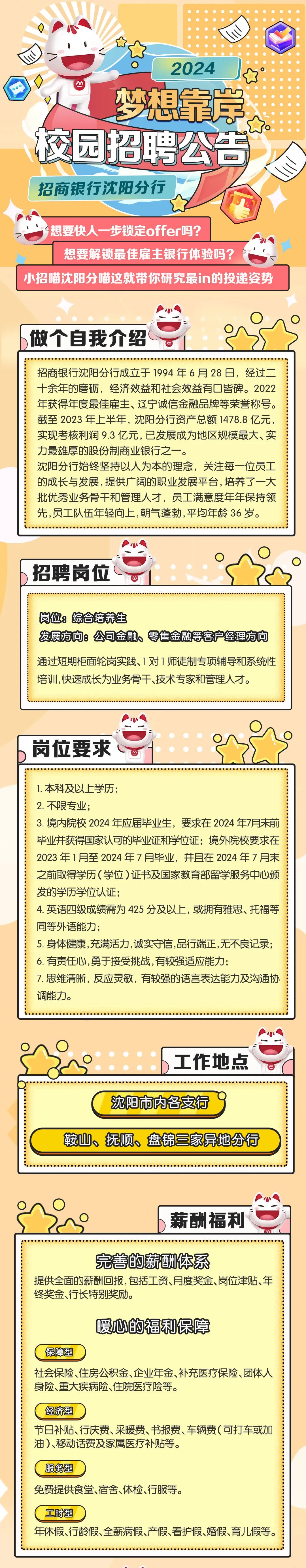 “梦想靠岸”招商银行沈阳分行2024校园招聘