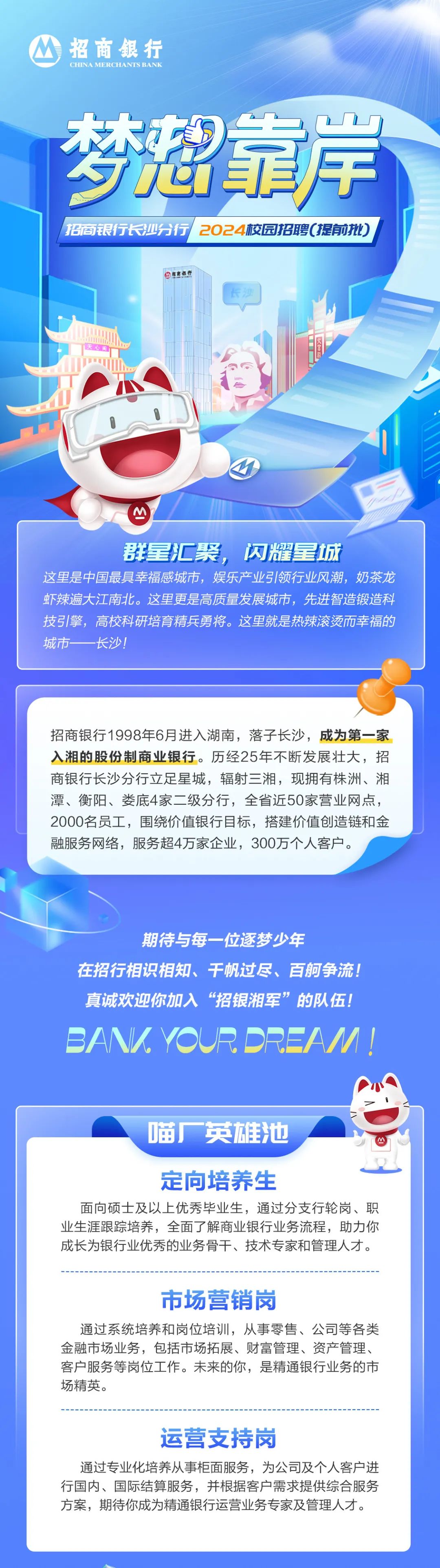 “梦想靠岸”招商银行长沙分行2024校园招聘