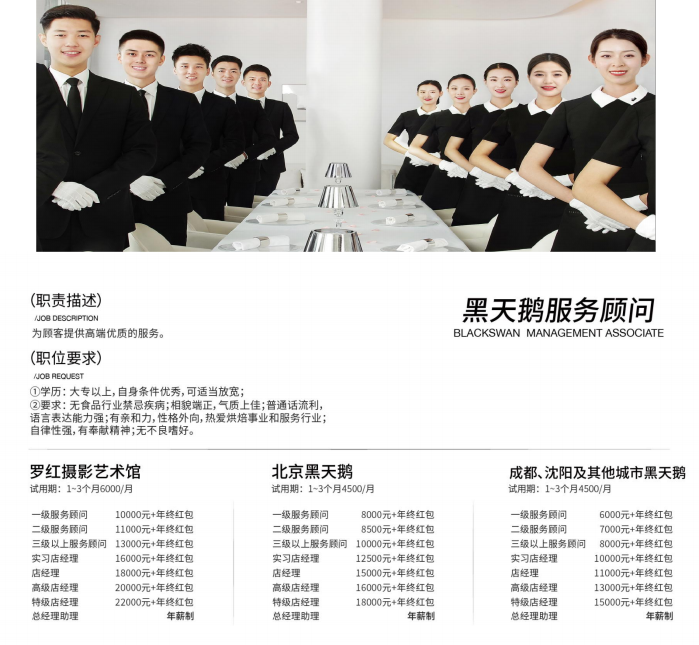 黑天鹅服务顾问工作城市:北京 ,沈阳,成都