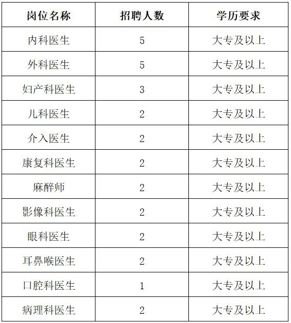 为进一步完善医院发展体系,充分做好人才梯队建设,根据实际工作需求,现面向社会公开招聘临床医生,现将具体事宜公告如下:
