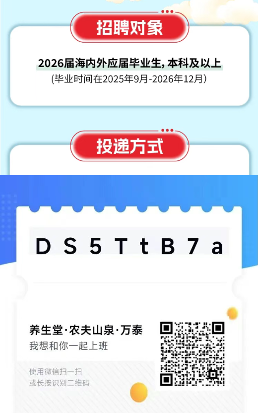 养生堂·农夫山泉·万泰生物2026秋季校园招聘公告