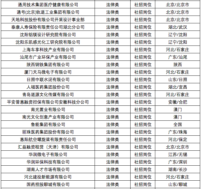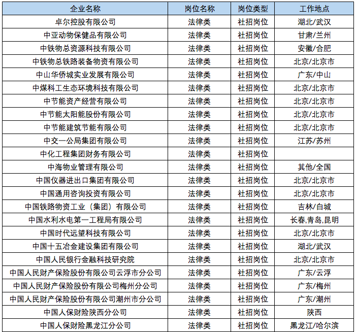 特别精选:法律类招聘岗位情况汇总工作地点遍布全国及海外↓下滑寻找你所意向的岗位吧↓社招岗位(点击图片查看详情)