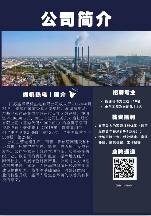 【机械-信息】江苏盛泽燃机热电校园人才招聘