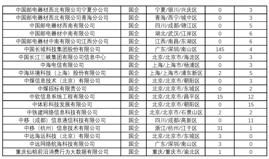 特别精选:软件和信息技术服务类企业招聘情况汇总↓下滑寻找你所意向的岗位吧↓国企单位