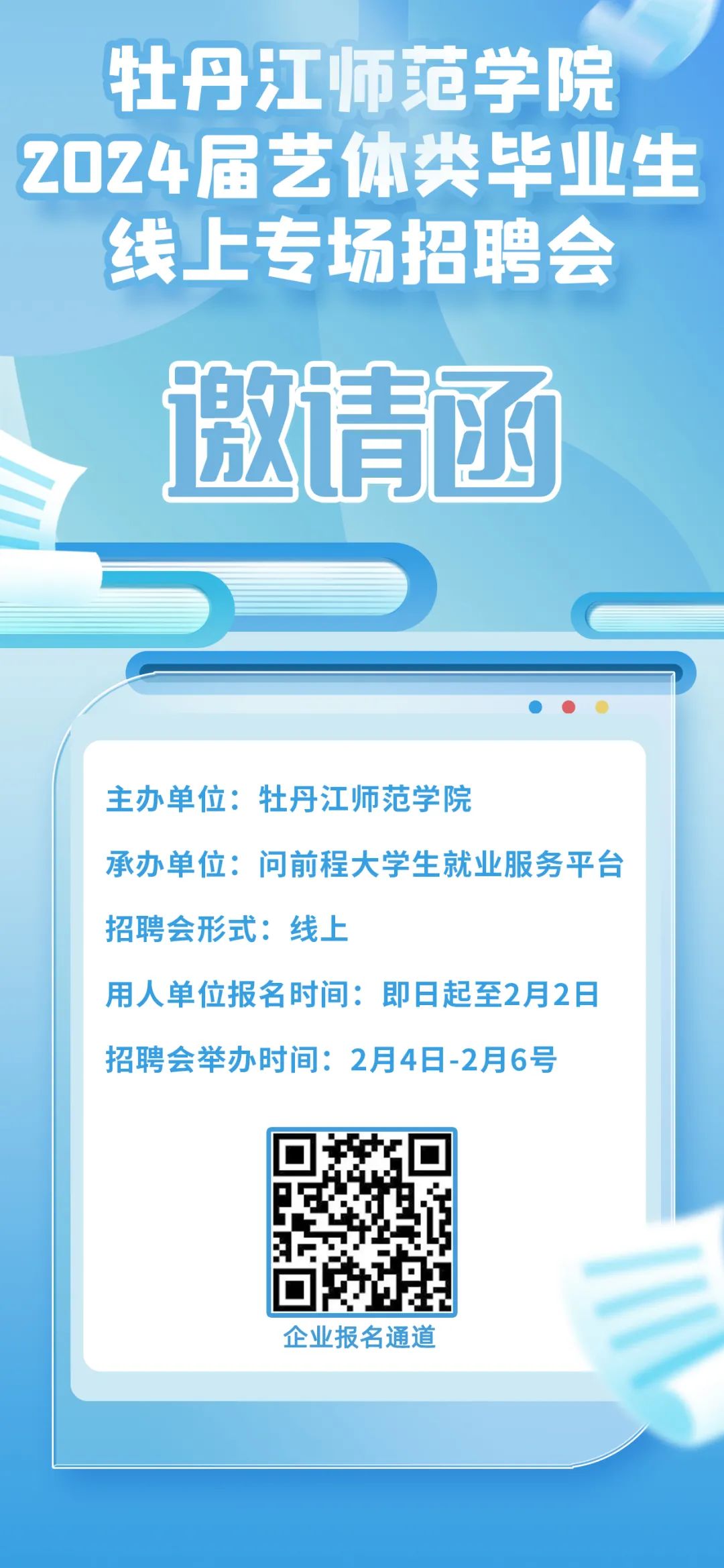 牡丹江师范学院2024届艺体类毕业生线上专场招聘会邀请函