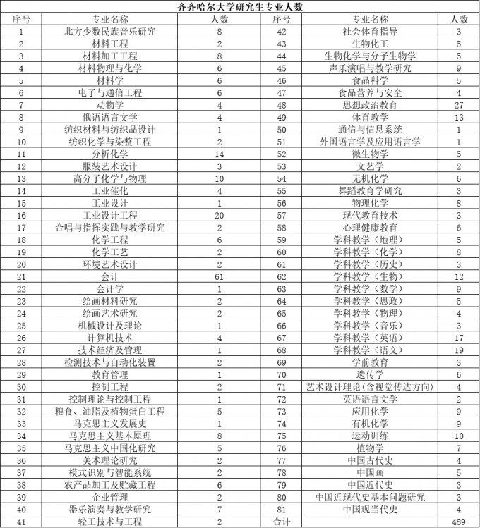 专业 | 人数 | 专业 | 人数 | 专业 | 人数 |