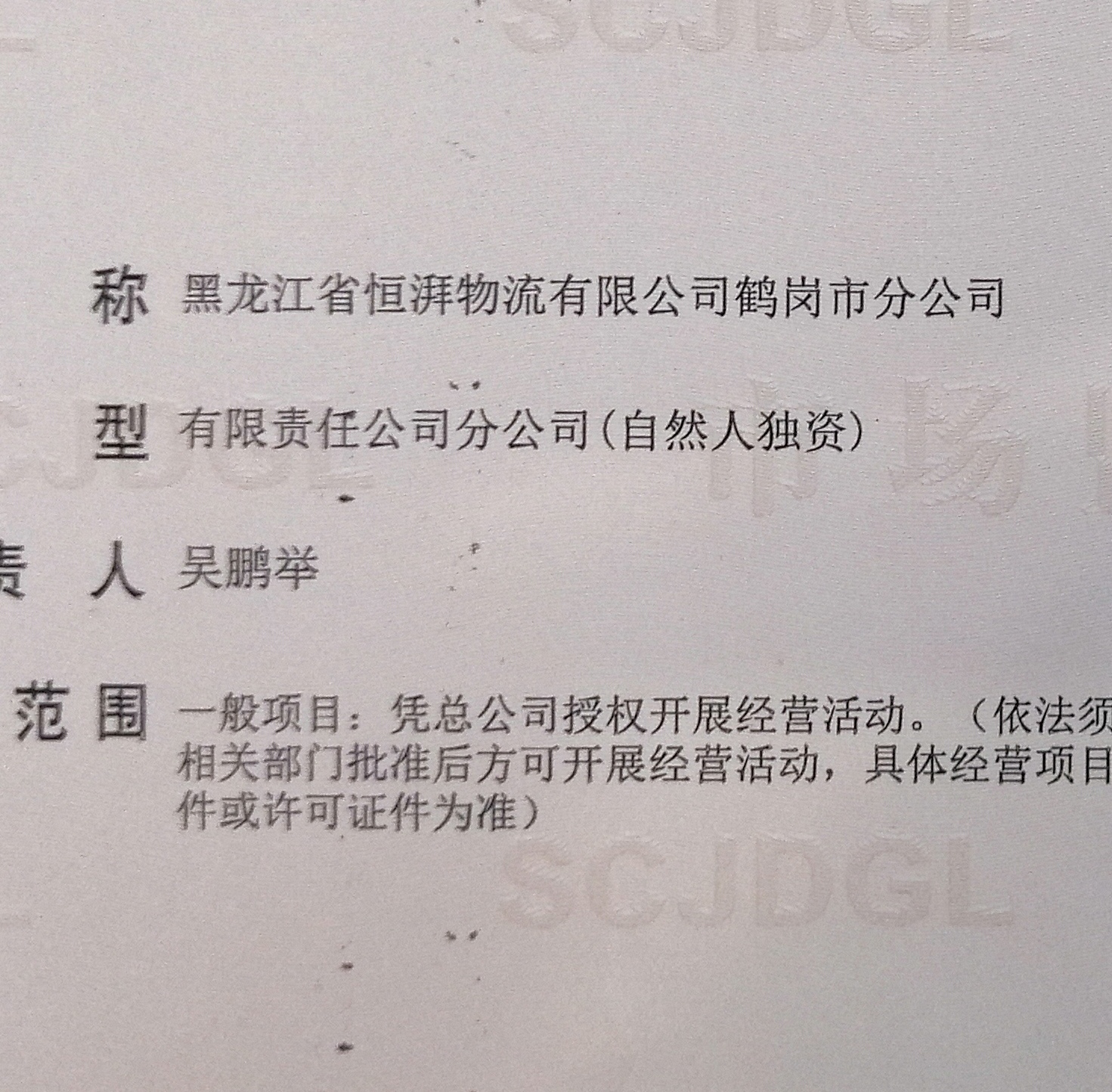 黑龙江省恒湃物流有限公司鹤岗市分公司