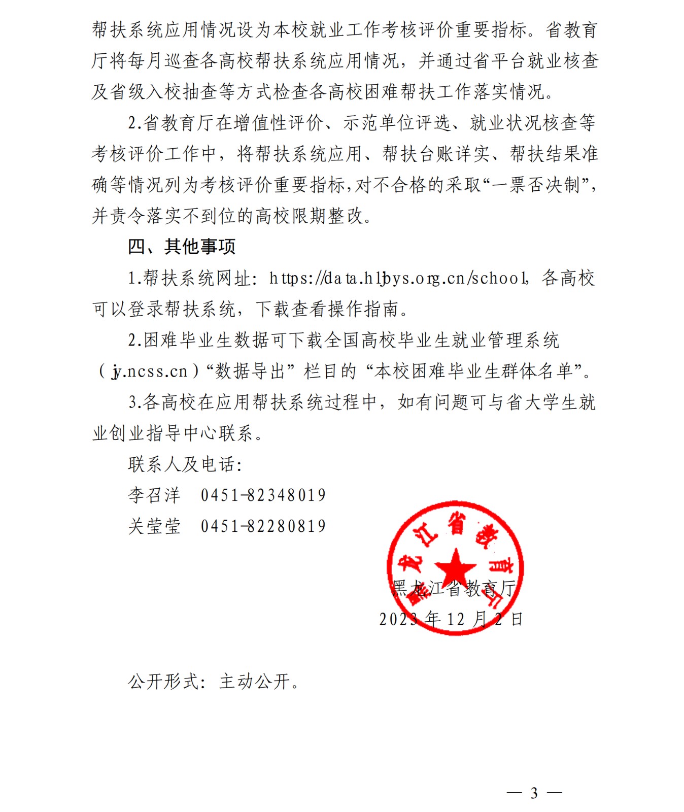 黑龙江省教育厅关于全面应用困难毕业生就业帮扶管理系统的通知