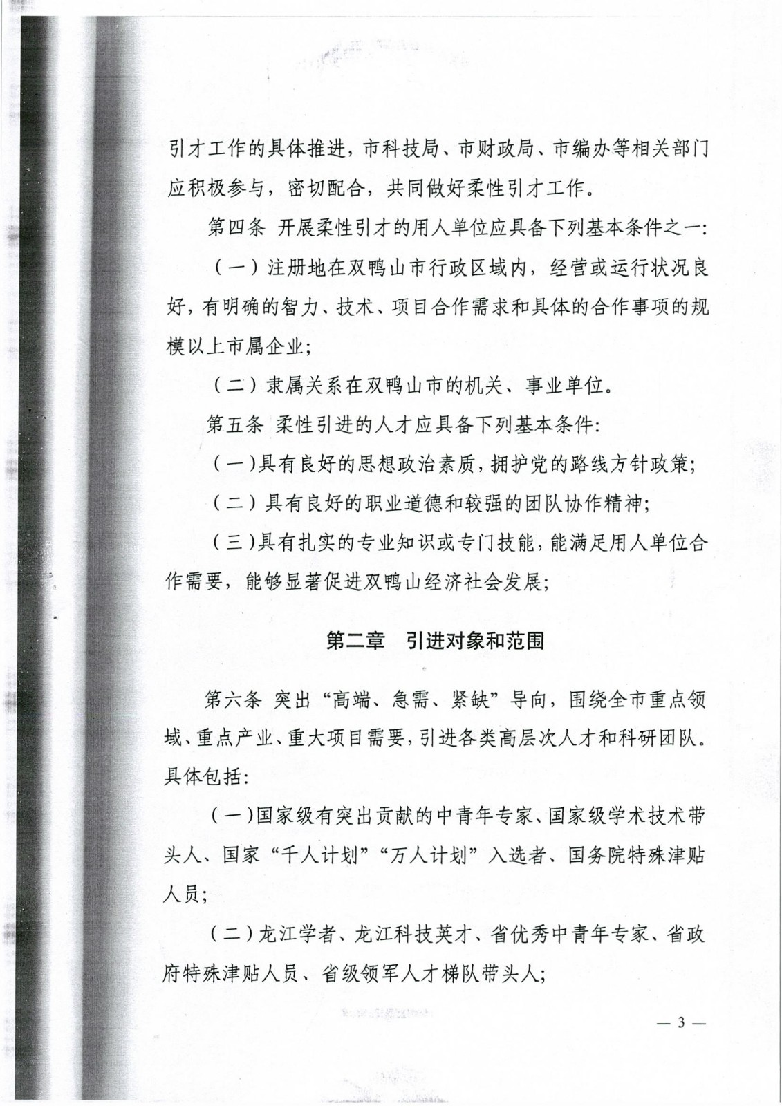 双鸭山市柔性引进人才政策
