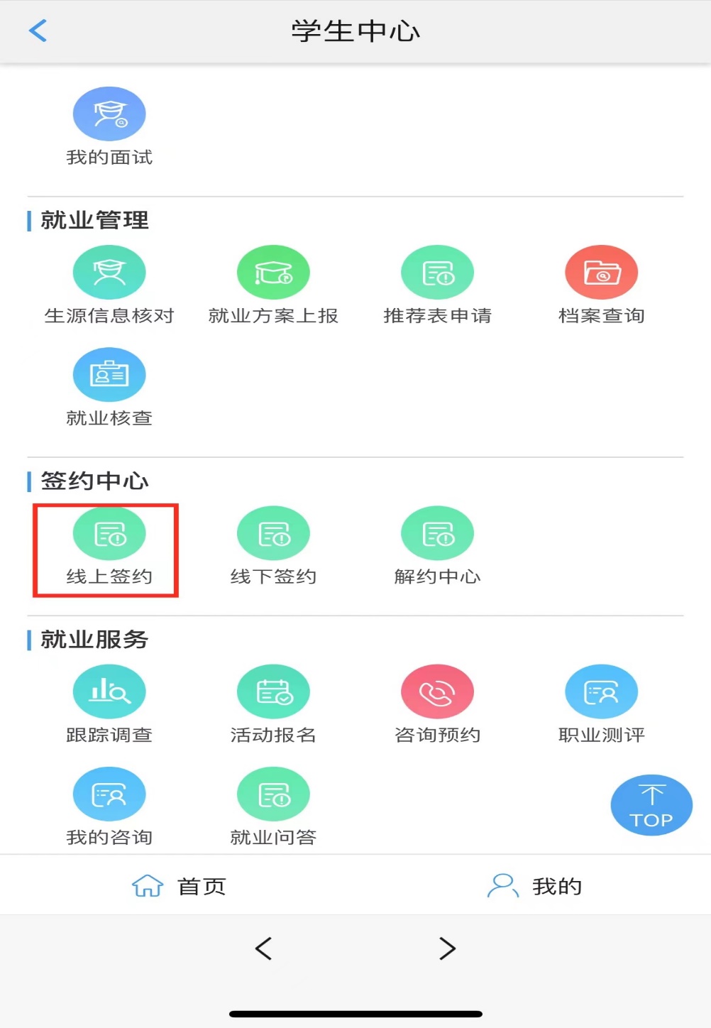 登录哈幼专就业服务平台微信端---主页---我的---输入账号密码----进入签约中心---线上签约---查看邀请函,如下图: