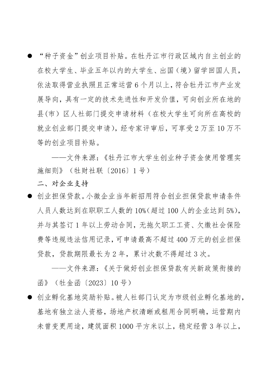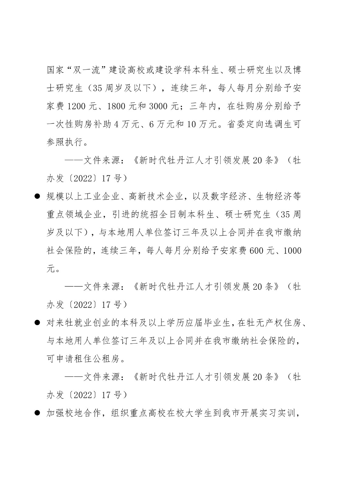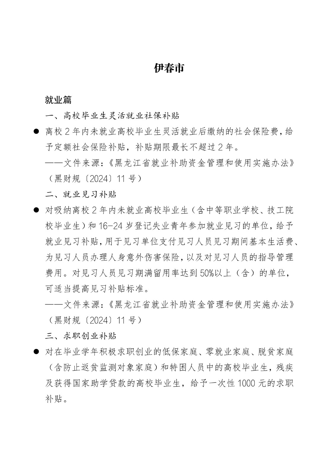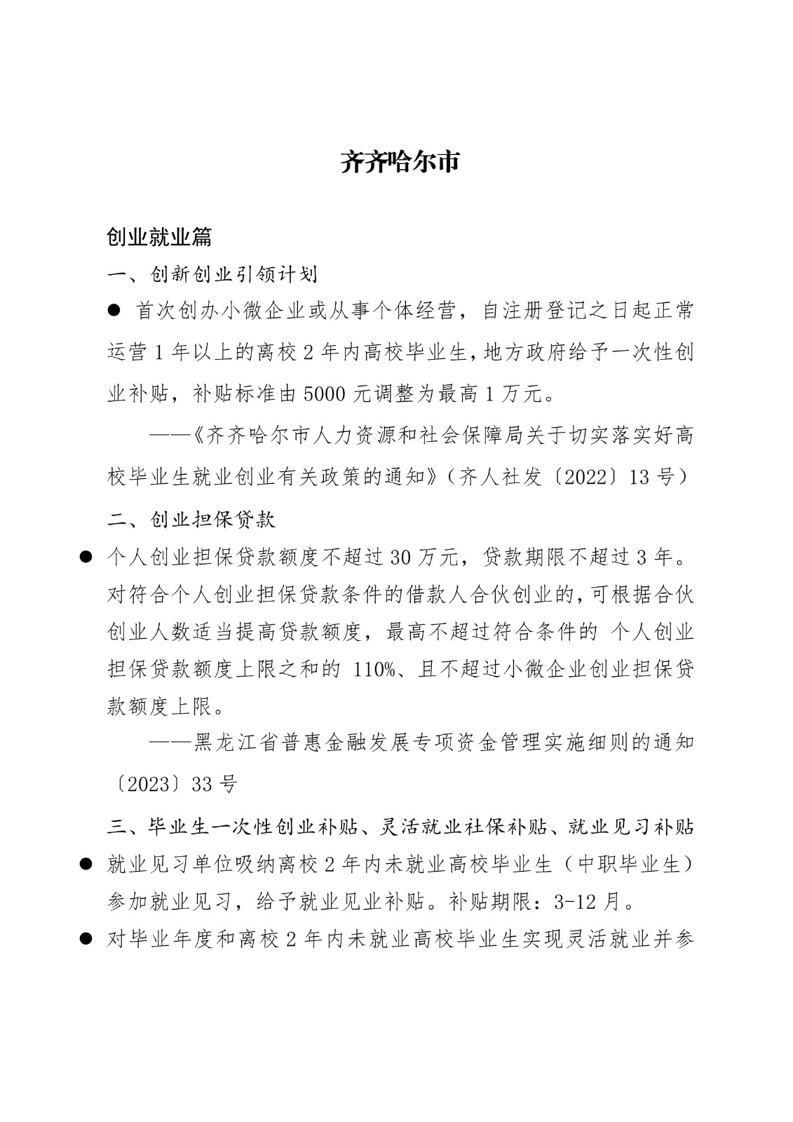 黑龙江省各地市高校毕业生就业创业政策摘录.pd