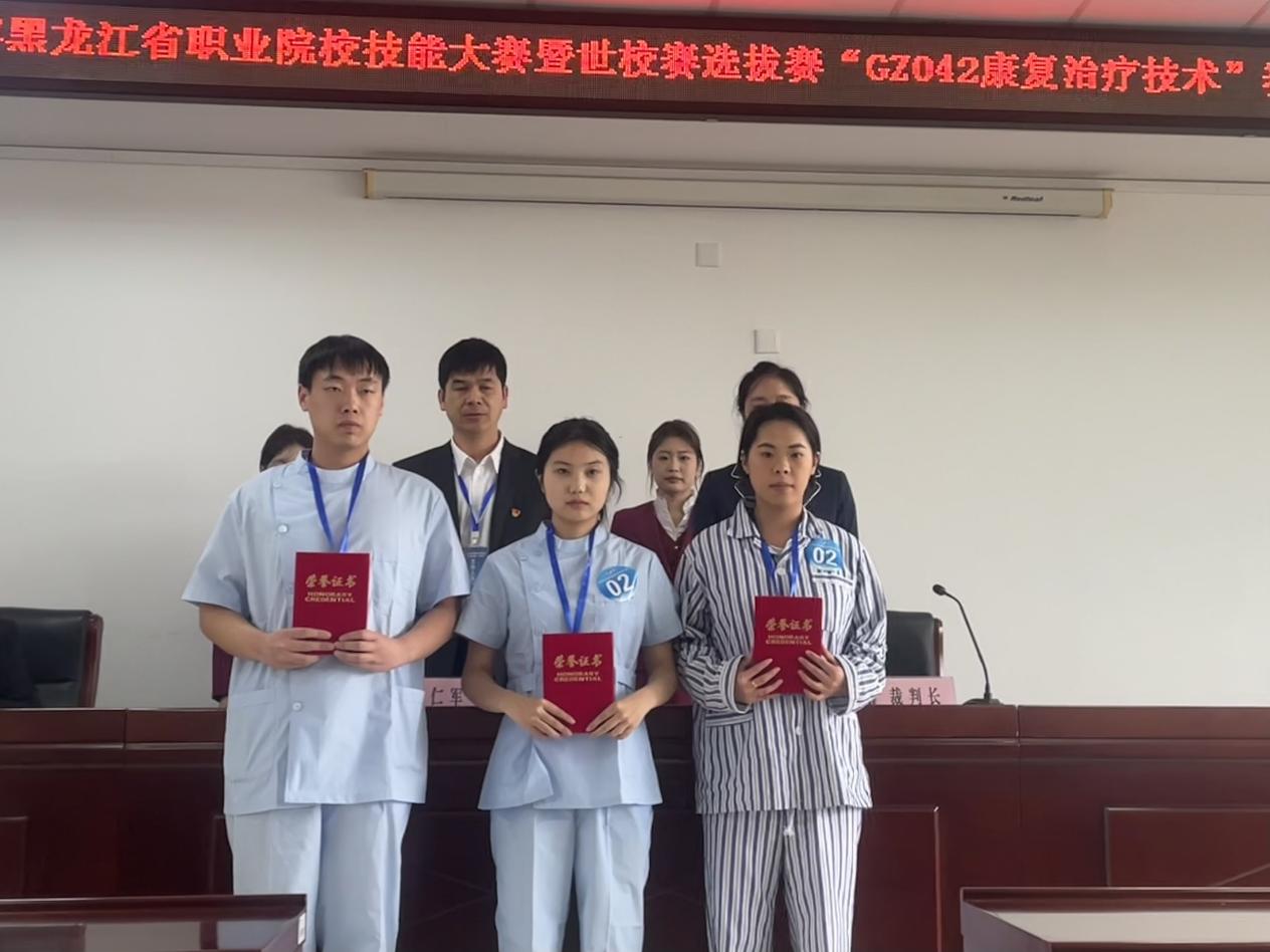 5月10日至11日,由黑龙江省教育厅主办的黑龙江省职业院校技能大赛暨世赛选拔赛(高职组)“康复治疗技术”赛项帷幕。学院康复治疗技术专业学生于文瑞、车德多、王艺旋、孙红翠在马晓庆和牛海亮两位教师的指导下积极备战,凭借扎实的专业知识、良好的团队精神和出色的临场表现,荣获团体三等奖,展现了学院在康复治疗技术领域的教学成果和学生的职业素养。