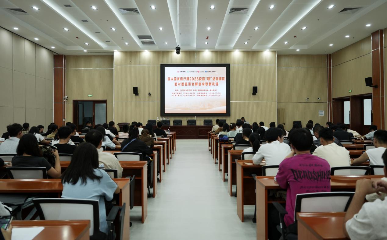 为全力推进2026届毕业生就业工作,给毕业生提供更多的就业平台,9月15日下午,牡丹江师范学院在教师教育实训楼一楼报告厅举办“四大国有银行携2026校招“职”达牡师院”专场招聘宣讲会,学校招生就业处相关人员、国有四大银行招聘宣讲团队及300余名2026届毕业生参加宣讲活动。