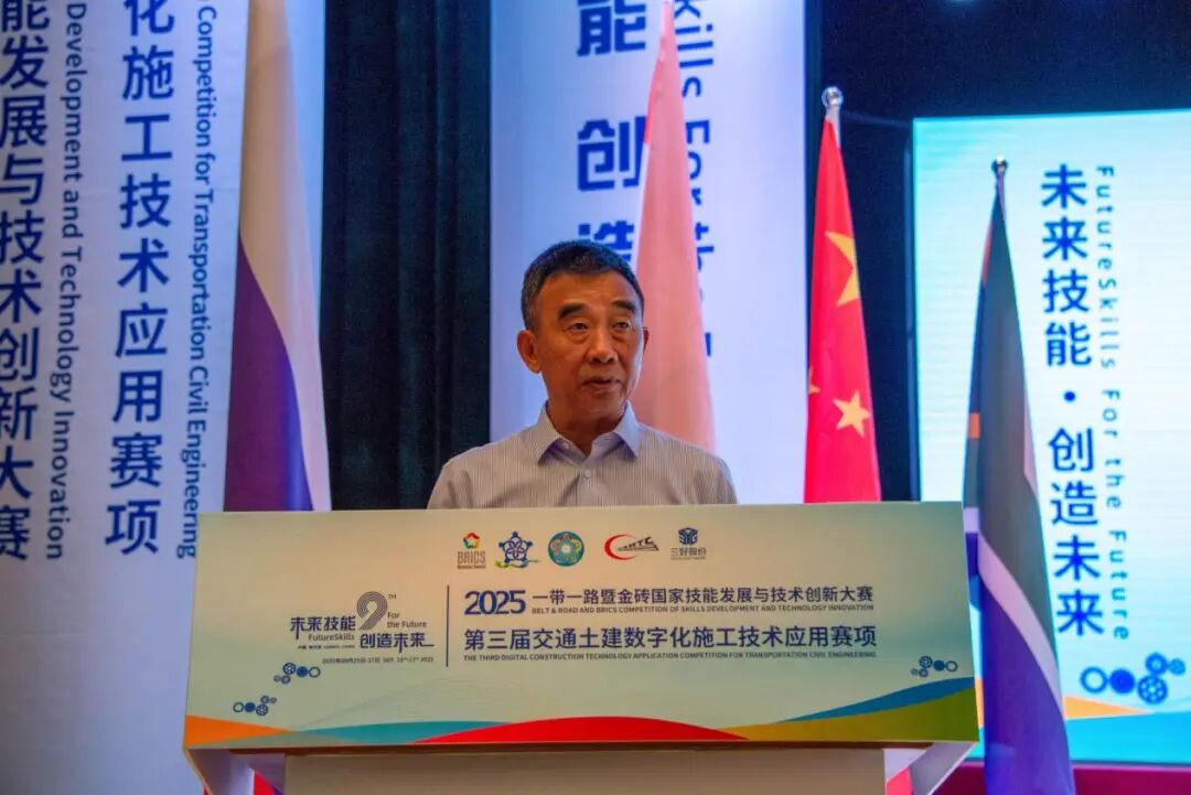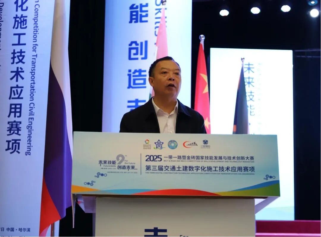 张巍结合哈尔滨“因铁轨而生”的城市基因,点赞哈铁职院作为交通英才摇篮,传承“铁的信念、铁的担当”工匠精神,与赛事主旨深度契合。他指出,交通土建正从“一锹一镐”迈向“一键生成”的数字智能时代,技能人才是变革核心。金砖大赛已成连接金砖技能合作的“黄金纽带”,本届聚焦“数字赋能基建”,是技艺比拼更是理念创新,呼应“一带一路”共建共享。作为技术支持单位,三好股份公司深耕土木教育,以数字化平台助力“以赛促教”,期待为青年搭建成长阶梯,寄语选手“既做筑路人,也做创新者”。