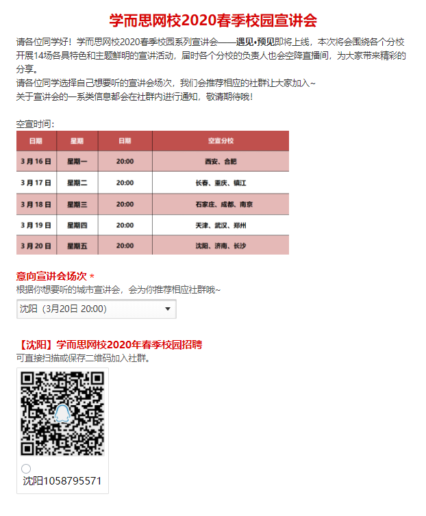 经与学而思网校HR沟通、确认,现将学而思网校2020春季校园云宣讲会信息公布如下,欢迎有意的同学积极参与